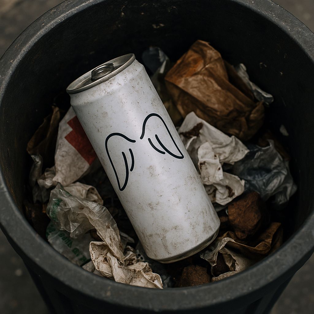 2. Quando pronunci la frase “Le ali sono un’illusione”, compi un gesto semplice e simbolico: butta la lattina nel cestino che si deve vedere.